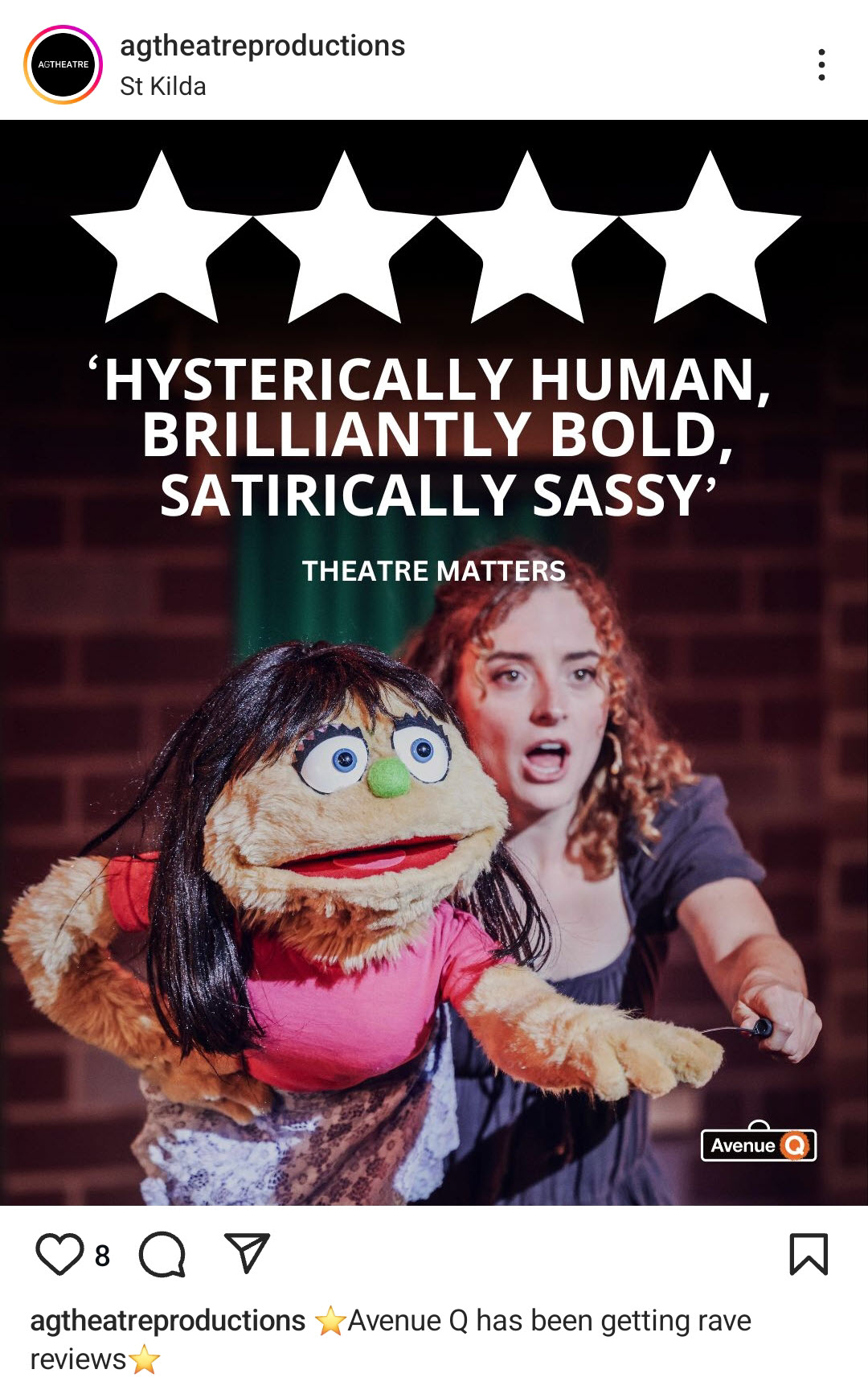 I’ve had reviews – under the Theatre Matters banner name – featured on publicity material for SIX the musical, Avenue Q and Sunset Boulevard.